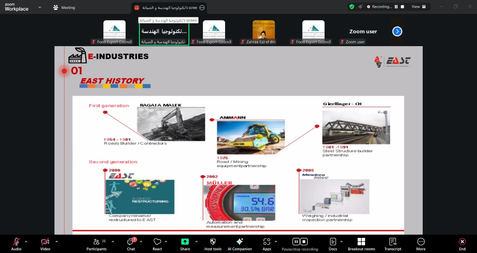 وشارك في الندوة فريق شركة تكنولوجيا الهندسة والصيانة، ممثلا في المهندس محمد حسين مدير المبيعات، والمهندسة ميرنا ماهر مسؤولة الدعم الفني، والمهندسة ماريان مجدي رئيس فريق دعم المبيعات، و قدموا عرضا تفصيليا حول تطور الشركة وخبراتها، ومحفظة حلولها الهندسية في القياس والتحكم والوزن وأنظمة الفحص، إلى جانب نماذج تطبيقية لمشروعات نفذت في قطاعات غذائية وصناعية متعددة.